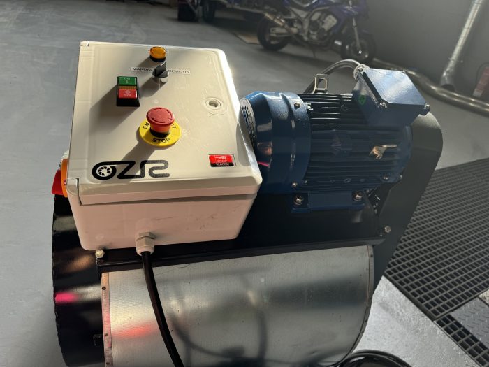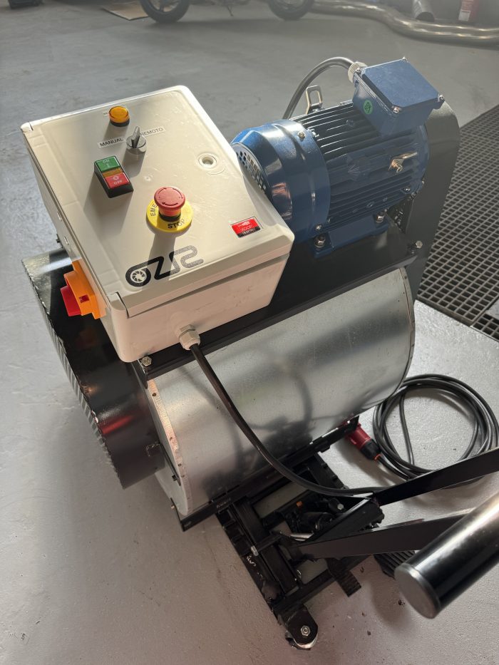 Turbina soplador para banco de potencia. Cuenta con un caudal máximo superior a 24000 m3/h. Consumo de 4kW.