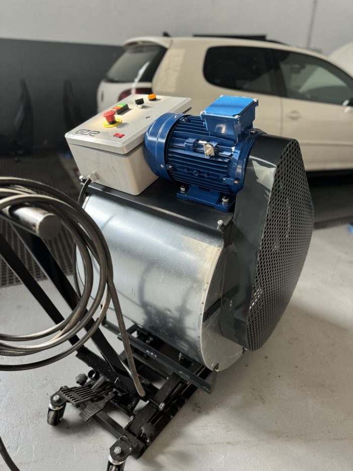 Turbina soplador para banco de potencia. Precio base de 1499€ con posibilidad de añadir complementos y extras aumentando el precio. Cuenta con un caudal máximo superior a 24000 m3/h. Consumo de 4kW.